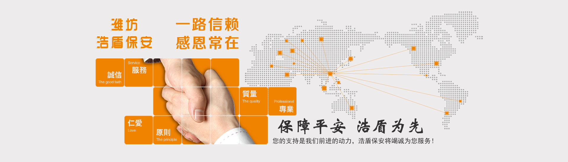 濰坊市浩盾保安服務(wù)有限公司成立于2019年,注冊(cè)資本200萬(wàn)元人民幣。我公司是以提供保安服務(wù)、保安員培訓(xùn)管理、安全方案制定與實(shí)施為主的專(zhuān)業(yè)化保安服務(wù)公司,經(jīng)營(yíng)范圍包括:門(mén)衛(wèi)、巡邏、守護(hù)、安全檢查、區(qū)域秩序維護(hù)等服務(wù)。經(jīng)山東省公安廳批準(zhǔn)、濰坊市公安局認(rèn)證備案的保安服務(wù)許可證。