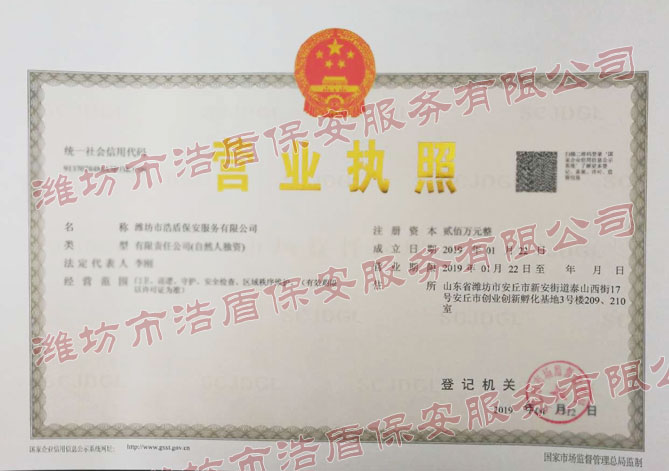 浩盾保安營(yíng)業(yè)執(zhí)照